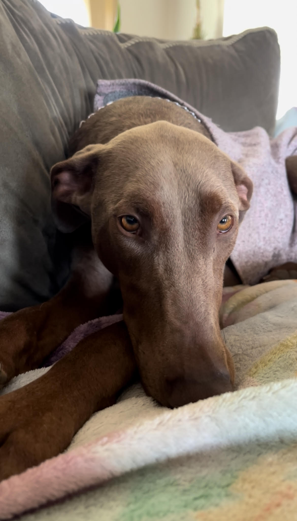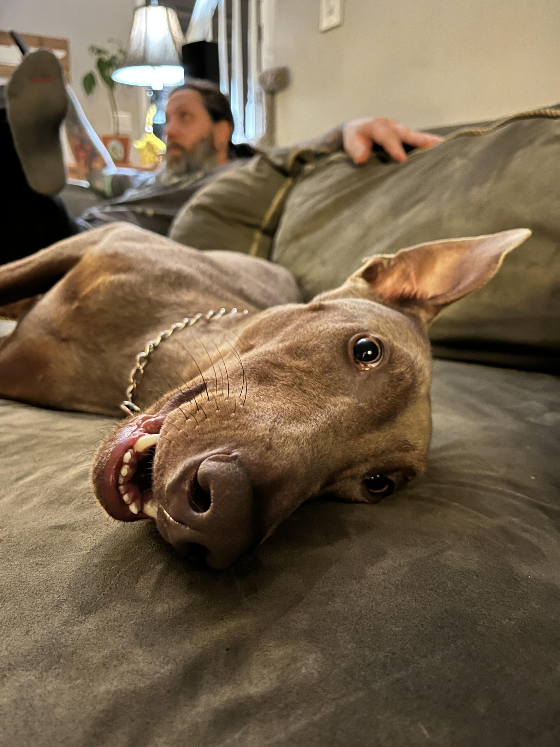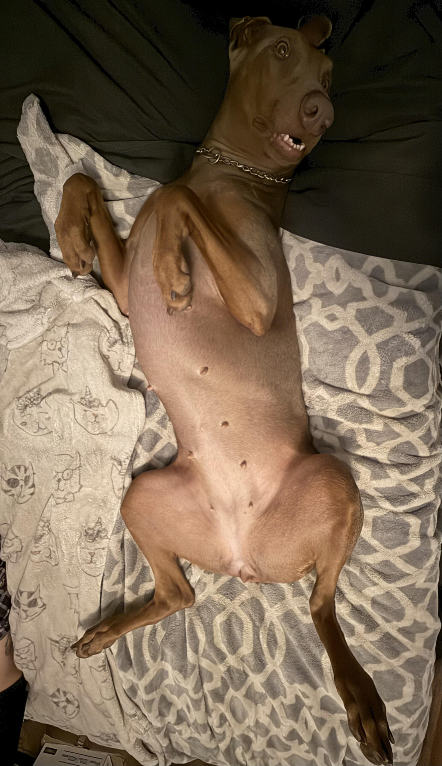 Natasha is a 3 year old fawn female. Storm is a 1 year old classic black & rust female.
