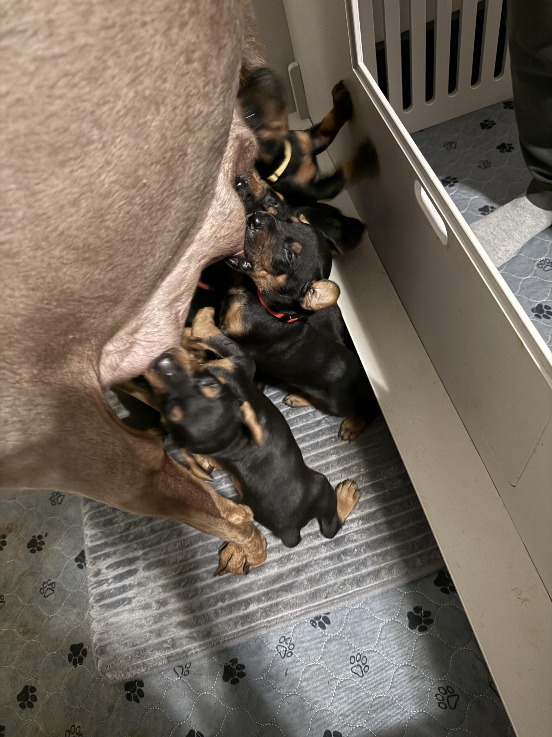 We are a small family operation. We have a couple of litters a year. We breed healthy, DNA tested dogs and place an emphasis on temperament, intelegence and personality. We want your family to have a similar experience as ours did! We want you to love a Doberman Pinscher and experience the love that only a Dobie can give!